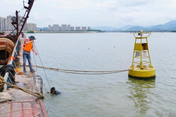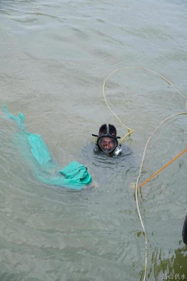 与此同时,,,,,,两组潜水员也穿戴好潜水设备、系好安全绳,,,,,,潜入江中开展清理工作。。。。。此次疏浚作业总耗时约1小时30分钟,,,,,,清除了附着在吸水口栅栏上的沉木、渔网及海瓜子等大量垃圾。。。。。疏浚结束后,,,,,,在开启同样泵机数量的工况下,,,,,,三江取水口与钱塘江内外液面差较疏浚前改善0.62米,,,,,,效果十分明显。。。。。整个疏浚过程,,,,,,无论是与滨江水司的配合还是启用湘湖备用泵站均表现较好,,,,,,对于出厂水的水质、水压未造成影响。。。。。