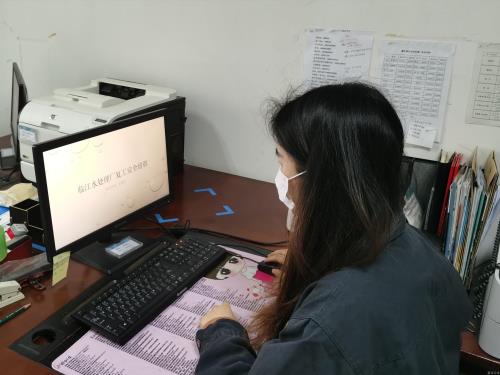 该厂指派专人赶制《临江水处理厂复工安全培训》PPT培训课件,,,,,, ,,并将课件和集团《复工安全培训》教育视频下发给全体员工开展线上复工安全培训,,,,,, ,,每位员工可利用电脑、手机、平板等工具随时随地学习,,,,,, ,,安全方便又快捷 。。。。。